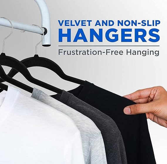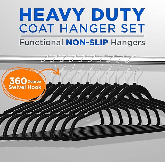 Special features 360-Degree Rotatable Hook, Slim Design, Non-Slip Velvet Surface, Sturdy Construction, Space-Saving Design, Shoulder Notches, Convenient Hooks for Accessories, Gentle Grip for Delicate Items, Prevents Fuzz Shedding, Preserves Clothing Shape, Heavy-Duty Capacity, Attractive Black Velvet Finish See more