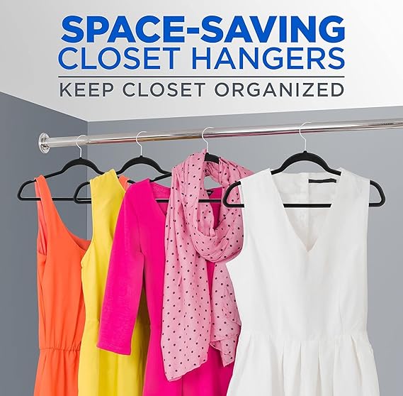 • SPACE SAVER: Slim and stylish, these black hangers for clothes maximize your closet space and help organize your clothes. The non-slip hook design ensures the safe hanging of clothes, while the slim, sleek structure optimizes closet space.