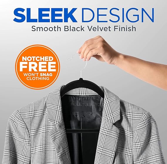 • WITH NOTCHES: The shoulder line on the black velvet hangers is contoured to preserve the shape of clothes and features precisely cut notches to keep straps in place. It also prevents clothes from slipping off the velvet-flocked hangers.