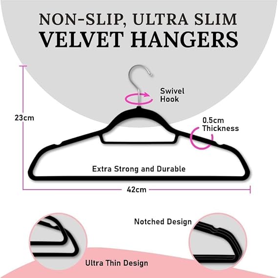 - PREMIUM QUALITY: These velvet hangers are very soft and give you a luxurious feel, unlike plastic and metal hangers. The velvet used in these hangers is of premium quality, so no need to think about stains and shedding off. It also prevents clothes from slipping off.