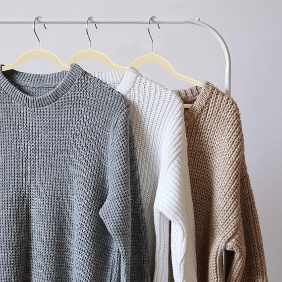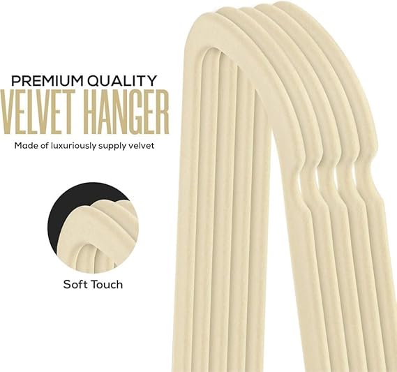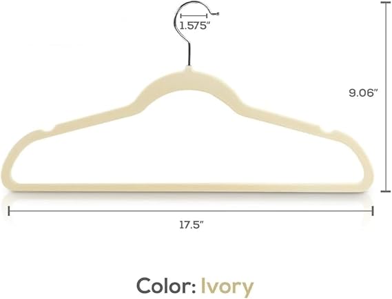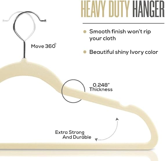 - DURABLE SWEATER HANGERS – Featuring smooth, ivory, non-slip velvet, 360 degree swivel hooks, and notched shoulders, this coat hanger set makes storage simple and stylish.