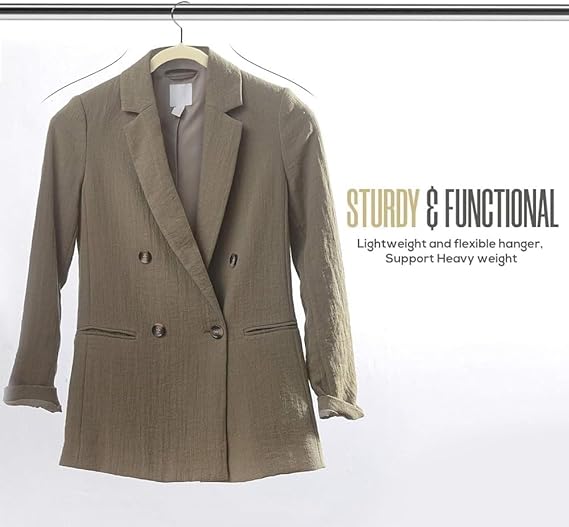 - PRESERVES CLOTHING SHAPE – Our clothing hangers’ design doesn’t stop at strength. Not only are our space saving hangers non slip, but the curved shoulder line preserves the natural shape of your clothing.